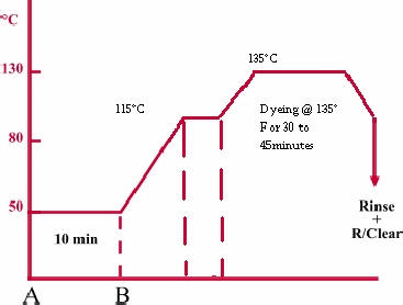 Other conditions of the dyeing liquor are the same as those for high temperaturedyeing. The temperature is raised gradually from 40-60°C and continued for 90-120min at 100°C.